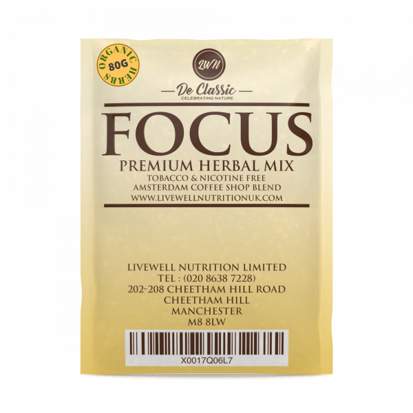 Focus Premium Herbal Smoke Mix. 100% Nicotine Free. 100% Mixed Herbs.80 grams