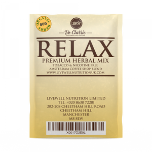 Indulge in moments of tranquillity with our Relax Premium Herbal Smoke Mix. The ingredients are carefully selected and finely ground, free from twigs for easy smoking. Enhance your experience by blending in your choice of herbs to create a bespoke and soothing smoking blend. Crafted to provide a calming and soothing experience, this blend aims to reduce stress and promote relaxation. Discover a comforting and gentle alternative to unwind and let go of the day's tensions.