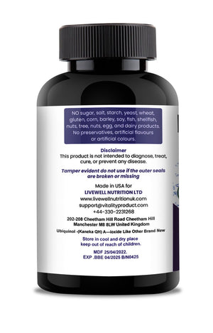 - Ubiquinol 100mg: Our supplement contains the active form of CoQ10, naturally fermented to ensure optimal quality and effectiveness in supporting your health.