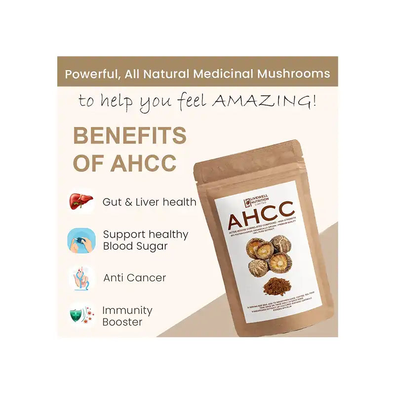 Introducing Active Hexose Correlated Compound (AHCC) – a remarkable health supplement derived from the shitake mushroom (Lentinula Edodes). AHCC is a natural extract recognized for its exceptional immune-boosting properties and overall health benefits. Carefully extracted using advanced techniques, it fortifies the immune system, promotes healthy cell growth, and provides potent antioxidant support. Extensively studied, AHCC offers a natural way to enhance well-being. Unleash the power of nature and take charge of your health with AHCC today. Here are some of the main potential benefits that have been supported by scientific studies: