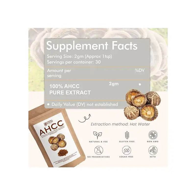 - Immune Support: AHCC has demonstrated the ability to enhance immune function by stimulating immune cells, promoting the production of cytokines, and supporting a balanced immune response.