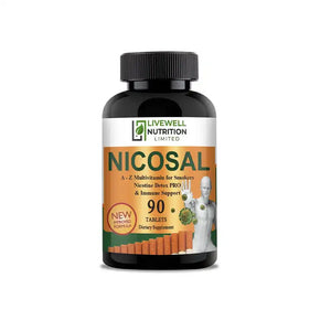 Our A-to-Z Multivitamin Nicosal is specifically designed to support the health needs of smokers and ex-smokers, as well as those who are trying to quit smoking. Packed with a comprehensive blend of essential vitamins, minerals, and herbal extracts, these tablets are made with rich health ingredients that can help address the unique challenges faced by smokers. Here are some benefits:- Vitamin C, A powerful antioxidant, combined with other essential nutrients in our A-to-Z Multivitamin Nicosal, helps protect your body against cell damage while supporting a strong immune system.