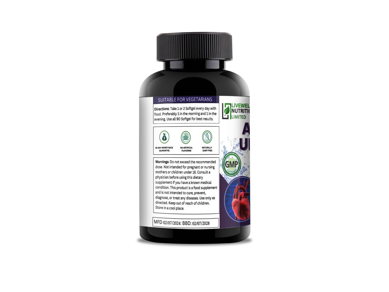 • Promotes Heart Health: Ubiquinol supports cardiovascular health by improving the function of the heart muscles, reducing oxidative stress, and promoting healthy blood pressure levels.
